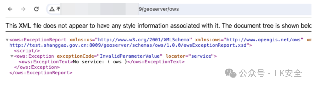 实战中手动拼接太繁琐,直接github找个项目跑一遍再手打。同时前段时间也爆出了geoserver存在远程命令执行漏洞,在这里也给出poc,但是似乎存在漏洞的资产不太多2333访问/geoserver/ows这个接口,如果出现下图这种情况可能有戏。
