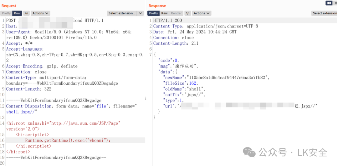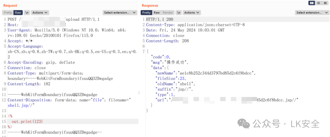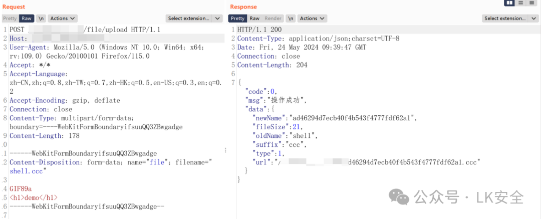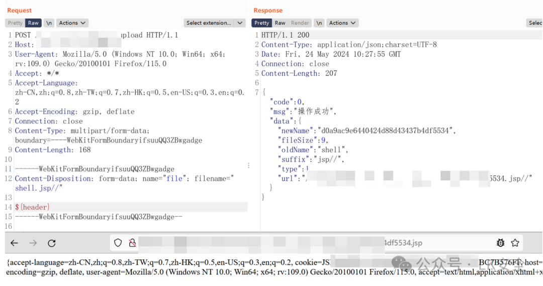 于是尝试对文件后缀进行Fuzz,发现当文件后缀末尾加上俩正斜杠即可绕过检测,并被正常解析。