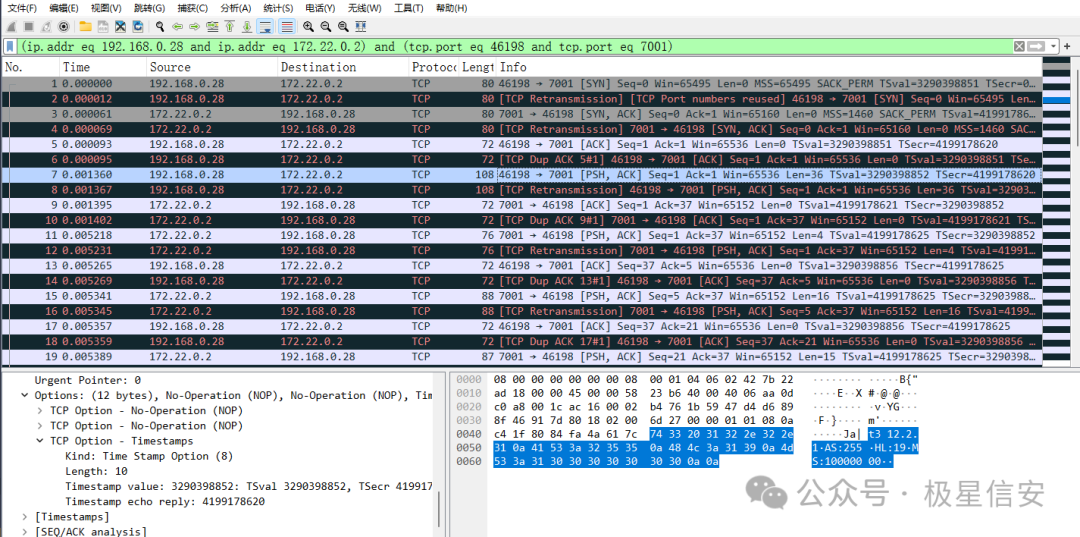 sudo tcpdump -i any port 7001 -w t3.pcap