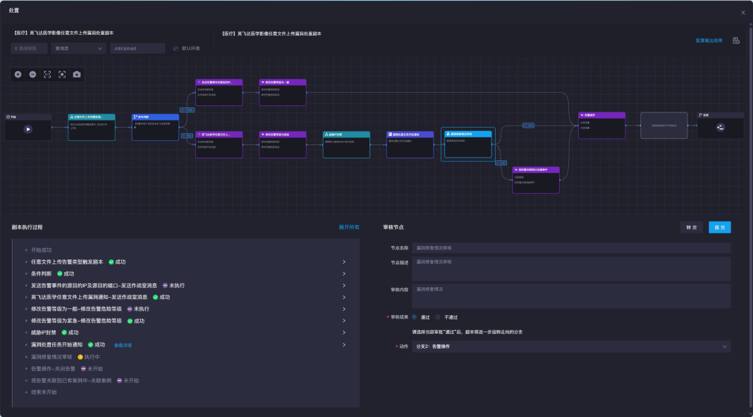 众智维科技深耕医疗行业,旨在为行业客户提供智能化安全应急处置方案,英飞达医学影像存档与通信系统任意文件上传漏洞已经经过研究及设计剧本,实现自动化处置,该剧本可以通过捕获并判断任意文件上传漏洞的目的地址关联的资产是否为英飞达医学影像存档与通信系统,若存在立刻将告警等级修改为严重,通过重新定义等级触发对应的应急动作,调用防火墙接口进行封禁源IP地址同时执行漏洞修复审核工作任务,针对漏洞执行相应的补丁修复操作,考虑客户真实的处置环境会有修复困难等问题,采取对应的抑制措施并将该类型告警关联到目标资产相关的case中去,进行漏洞的延时处理。RedOps作为医疗行业安全运营的神经中枢,使得MTTR响应指标同比之前降低300%以上,将原有超过4小时的处理时间压缩到小时和分钟以内,大幅度减轻客户的应急溯源等运营压力。