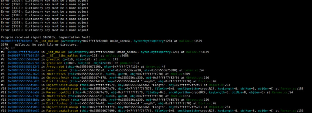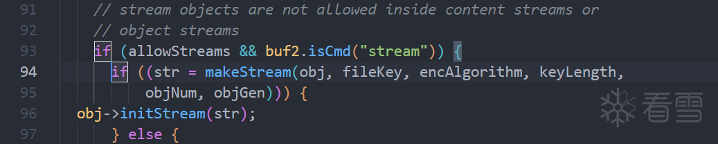 从xpdf/Parse.cc 94行的makeStream调用,一路跟着报错往下翻就会找到这个套娃,这里就不细说了。