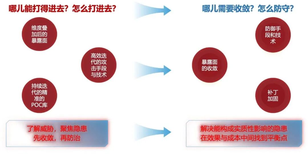攻击者的核心目的是快速打倒对手,当防御者引入攻击者视角,就可以实现用最快的时间验证风险的存在,看到敌人看到的一切,看到资产风险的边界。