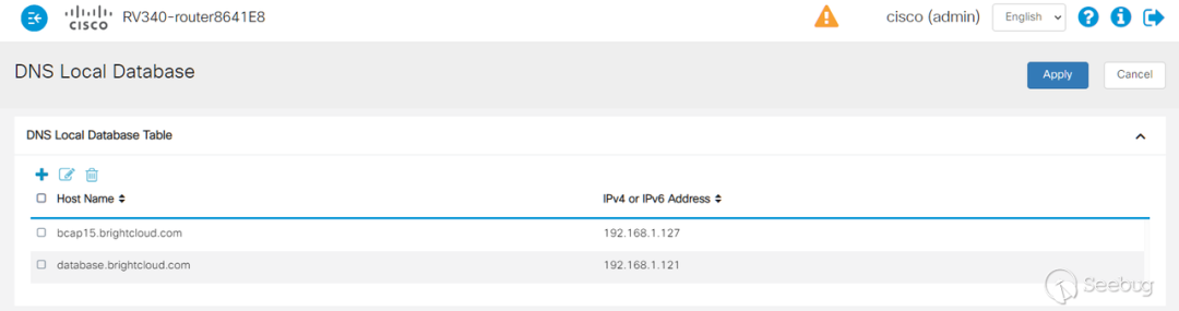 管理界面提供了一个DNS local database