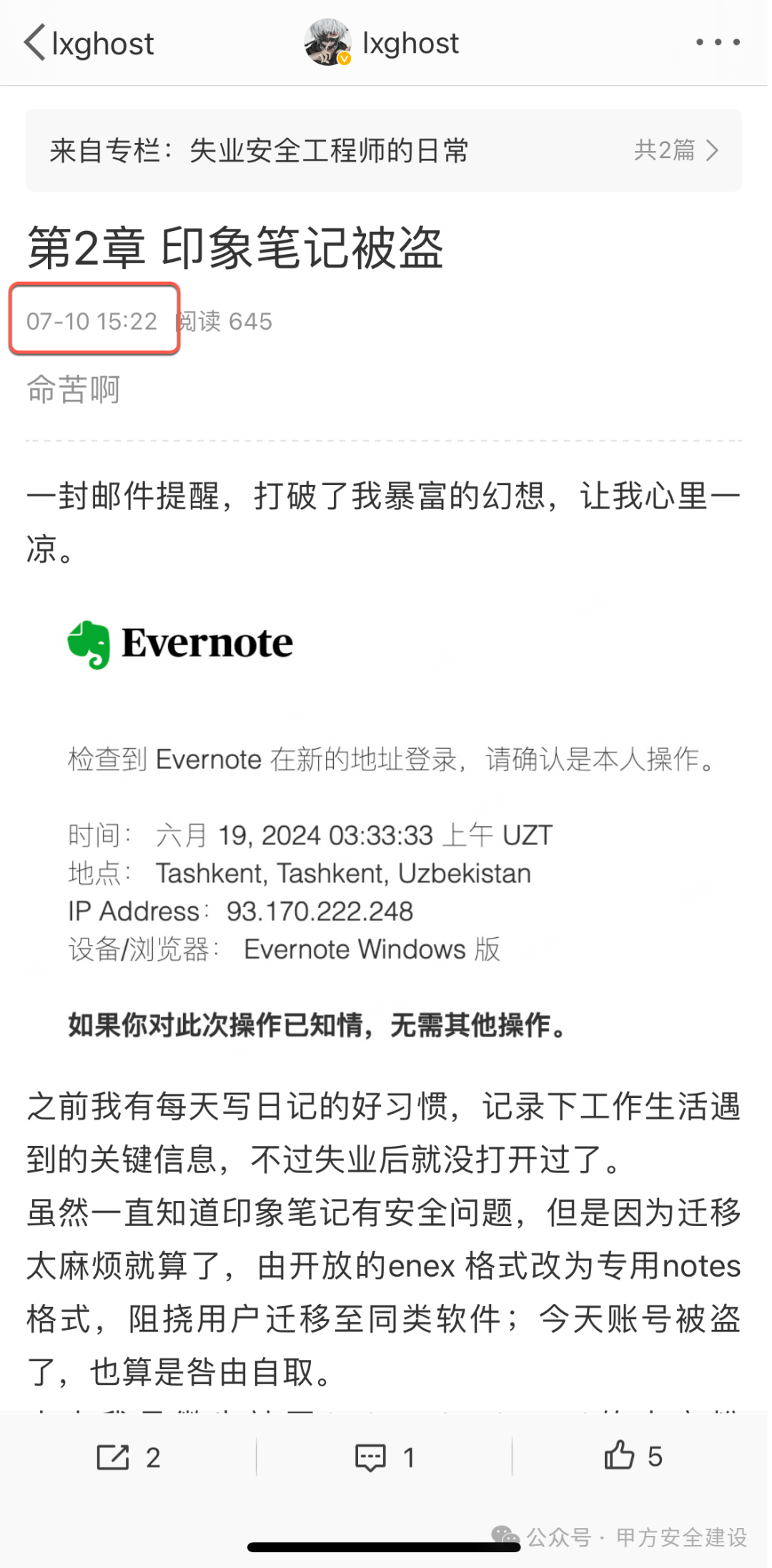 某知名安全大V,昨日印象笔记被黑