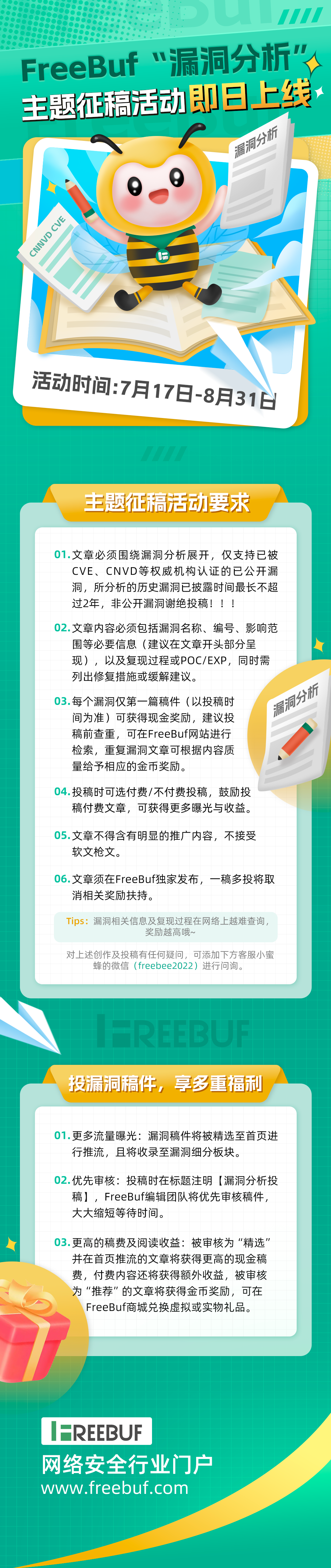 即日(7月17日)起,FreeBuf正式开启「漏洞分析」征稿活动