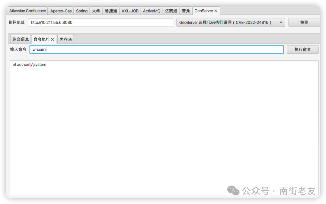 详情参考GeoServer property RCE注入内存马