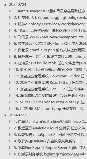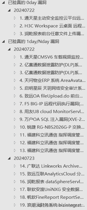 HVV漏洞PoC分享第二弹 发布于2024年7月26日2025年7月19日 作者:cve-20 HVV漏洞PoC分享第二弹 Ti TIPFactory情报工厂 2024-07-25 18:14 互联网上资源,仅供学习,谢谢. 后台回复 HVV2024 POC1获取下载链接。