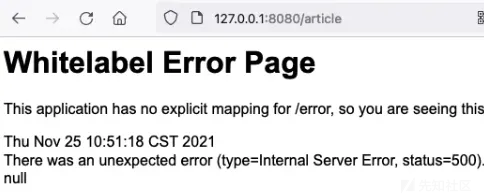 漏洞复现,测试网站是否存在Whitelabel Error Page,通过fuzz一些参数值,如id、sid存在500报错,则可以测试去执行Spel表达式注入