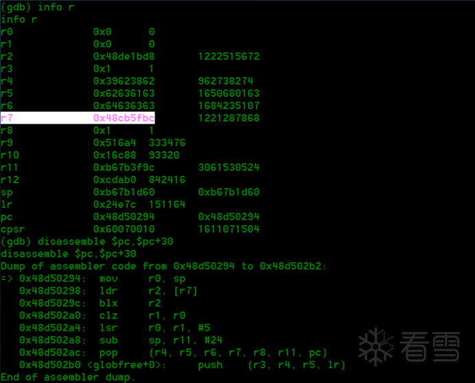 触发漏洞后执行到0x48d50294时,R7为控制的0x48CB5FBC。