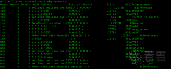 接下来准备把HTTP服务程序拿出来分析下。设备默认开启了5555端口,可以直接通过adb连接拿到设备权限。通过看看连接状态可以确定/opt/ejoin/bin/vfd就是HTTP服务程序。