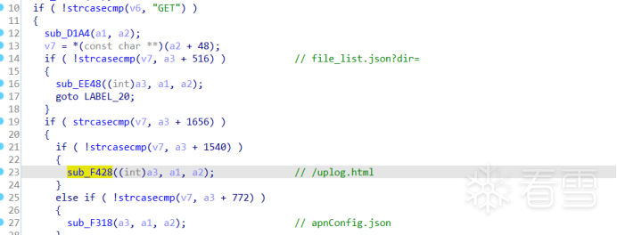 继续查找交叉引用,最终发现目录来自http://192.168.0.1/Uplog.html请求的filename参数。