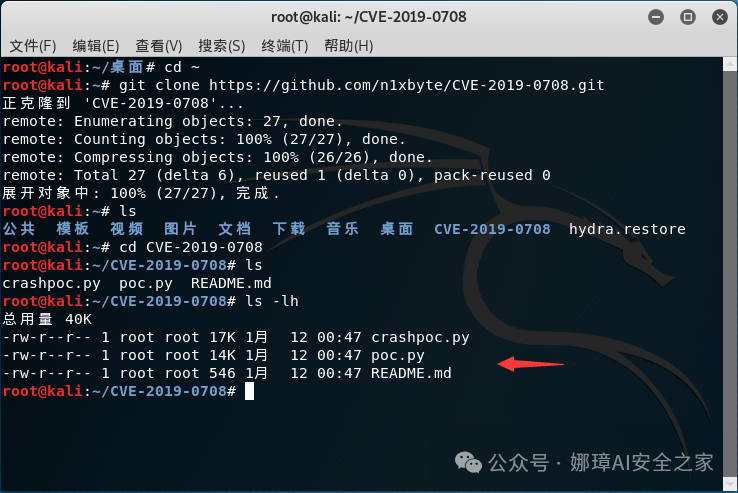 第三步,查看所下载资源的组成,可以看到crashpoc.py、poc.py、README.md文件。