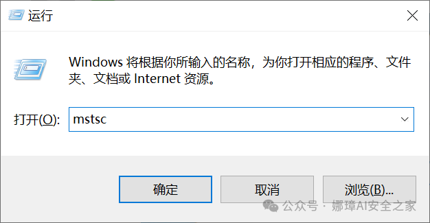 接着打开远程控制的电脑Win10系统,在运行中输入“mstsc”。