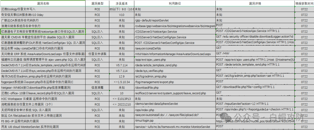 关注公众号,私信【0722】即可获取0722-0726所有漏洞详情链接