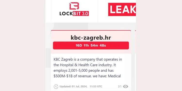 【安全圈】LockBit 宣布攻击克罗地亚最大的医院 KBC-Zagreb