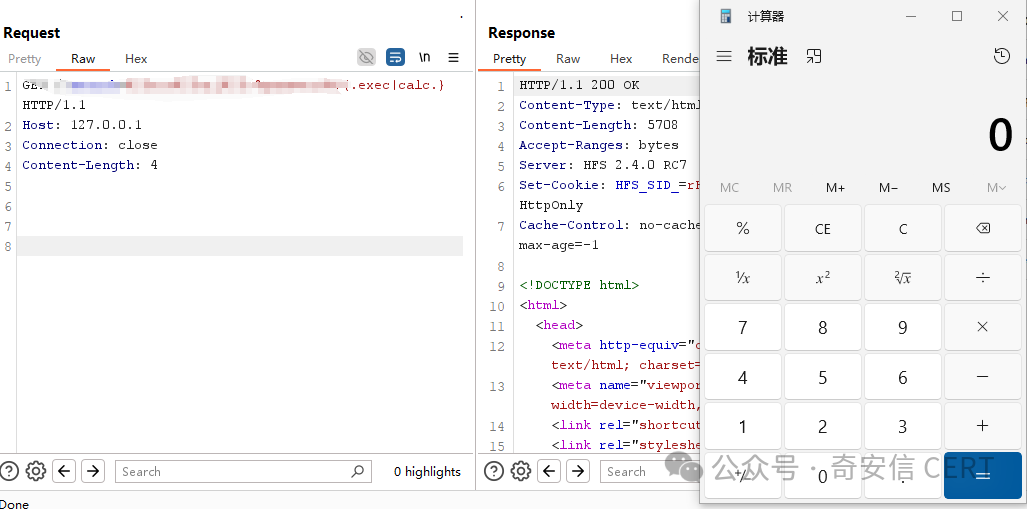 目前,奇安信威胁情报中心安全研究员已成功复现Rejetto HTTP File Server 模板注入漏洞(CVE-2024-23692)****,截图如下:
