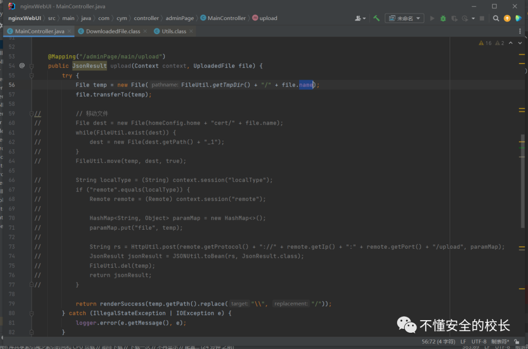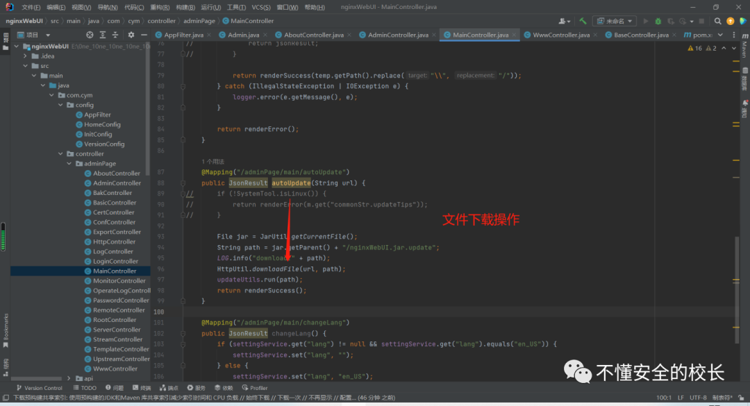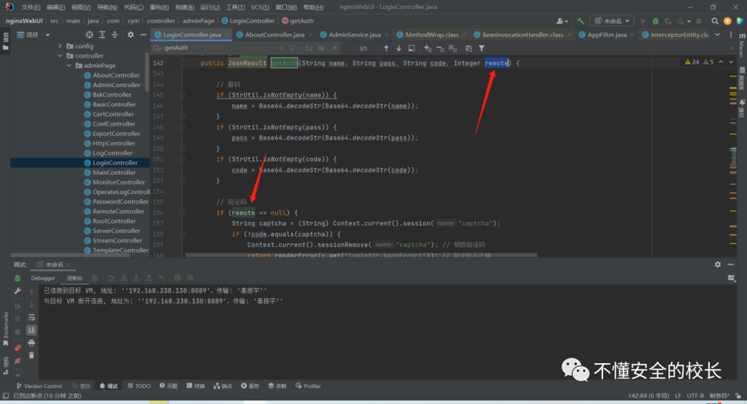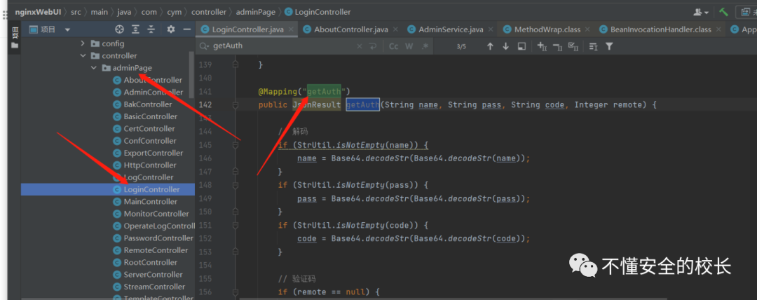 首先去对应路由关系 清楚运行的逻辑 就能快速去挖掘了,这里登录抓包 url 为 /adminPage/login/getAuth 相当于为 contoller/adminpage/Logincontoller/ 方法直接找Mapping绑定