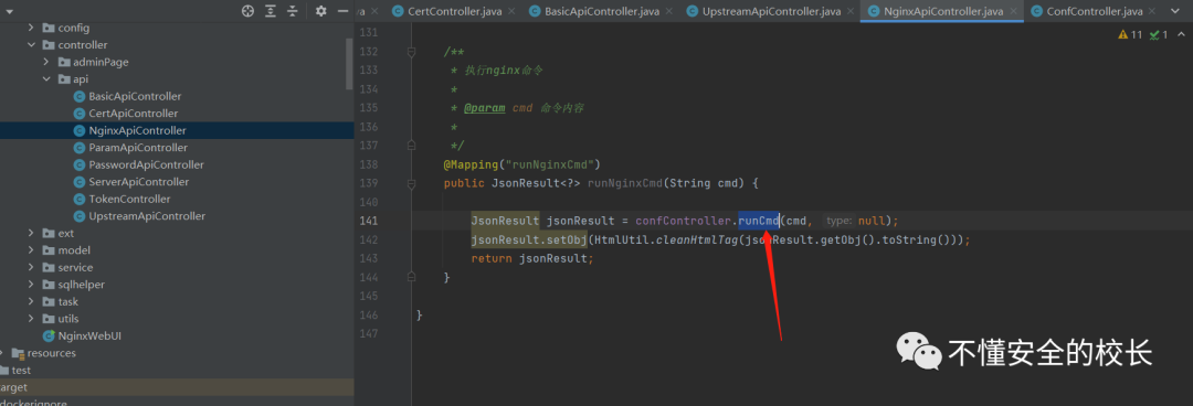 confController.runCmd 这里他调用了conf控制器类的runCmd方法 跟进去看,这里调用了exec方法,可以直接RCE。