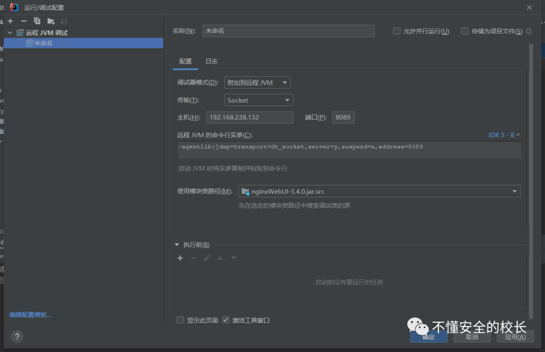 java  -agentlib:jdwp=transport=dt_socket,server=y,suspend=n,address=8089 -jar -Dfile.encoding=UTF-8 D:/home/nginxWebUI/nginxWebUI.jar --server.port=8081 --project.home=D:/home/nginxWebUI/