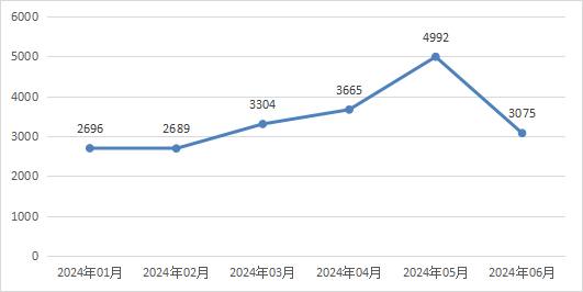图1  2024年1月至2024年6月漏洞新增数量统计图