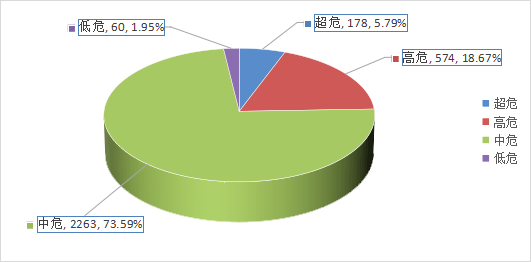 2024年6月新增安全漏洞3075个,与上月(4992个)相比减少了38.41%。根据近6个月漏洞新增数量统计图,平均每月漏洞数量达到3404个。