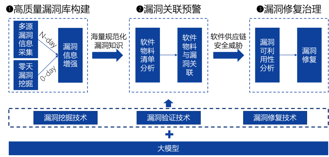 大模型具备强大的模式识别和语言理解能力(包括自然语言和程序语言),能够在漏洞报告分析、代码安全审计和修复建议生成等关键漏洞治理任务中提供有效支持。引入大模型技术能有效提高漏洞治理的效率,减少对人工审查的依赖,大幅缩短漏洞暴露时间。