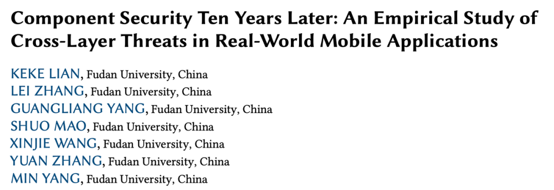 2024年7月15日至19日,软件工程领域最具有影响力,历史最悠久的国际旗舰学术会议之一 FSE(CCF A类)将在巴西召开。复旦大学系统软件与安全实验室在移动安全领域的最新研究成果“Component Security Ten Years Later: An Empirical Study of Cross-Layer Threats in Real-World Mobile Applications”荣获2024年度FSE杰出论文奖(ACM SIGSOFT Distinguished Paper Award)