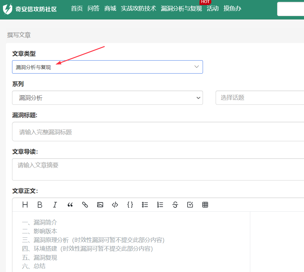 https://forum.butian.net/share/create,文章类型选择漏洞分析与复现