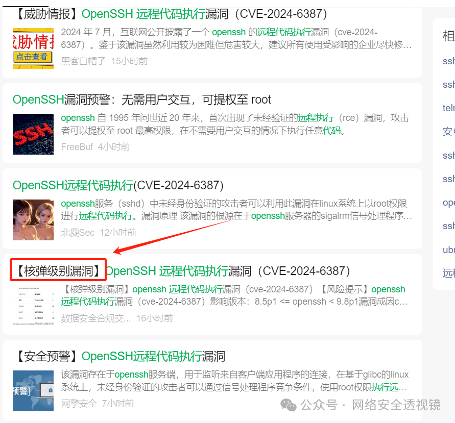 今天一堆公众号都在发OpenSSH 远程代码执行漏洞(CVE-2024-6387)