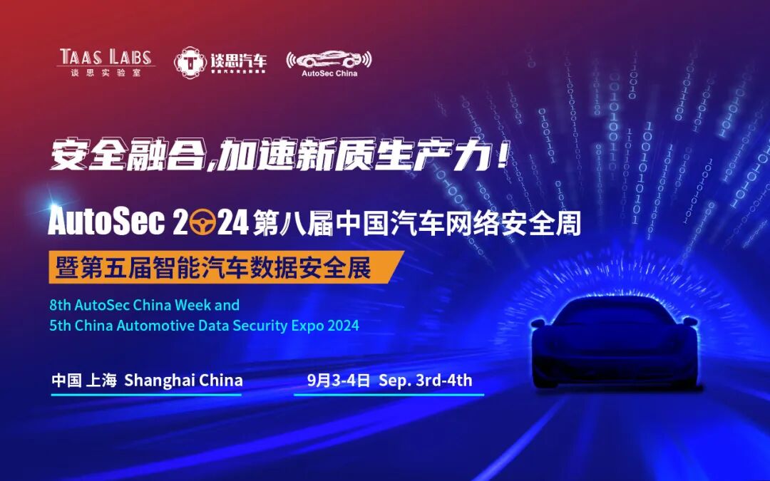 9月3日-4日,「AutoSec 2024第八届中国汽车网络安全周暨第五届智能汽车数据安全展」由谈思实验室和谈思汽车主办、上海市车联网协会联合主办,连续8年与大家相约金秋。