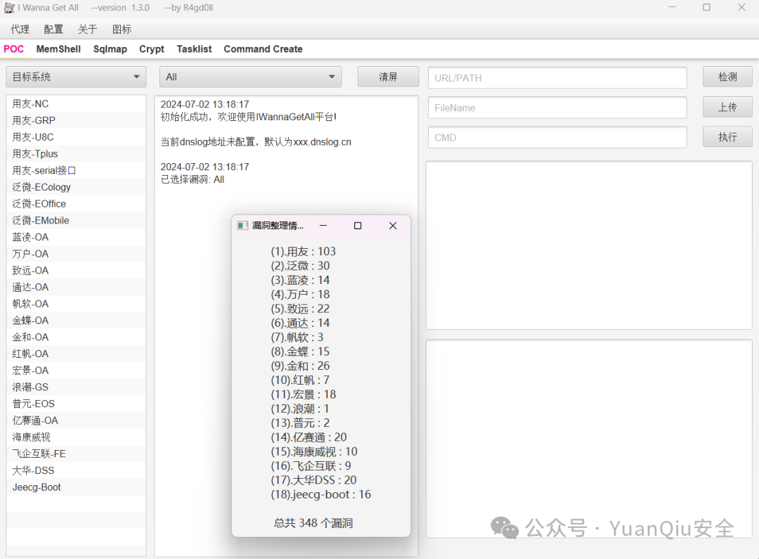 工具|OA漏洞利用工具,集成348+漏洞,包括nday、1day(未公开poc)