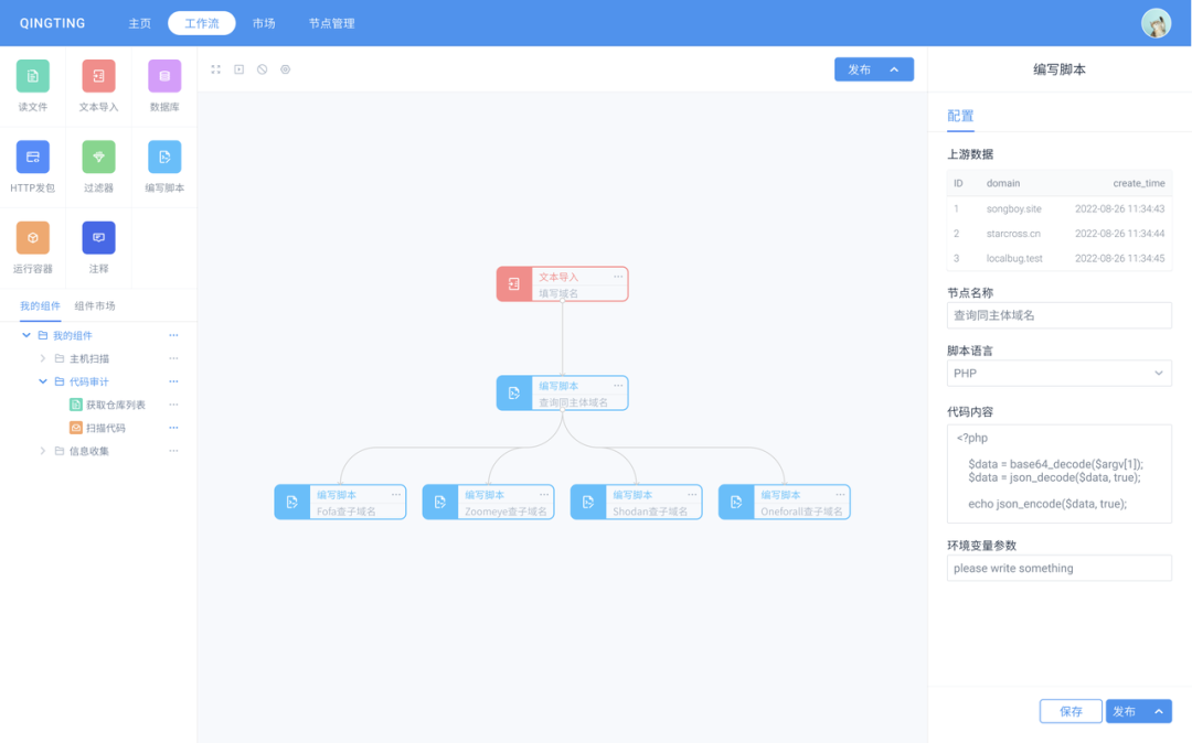 蜻蜓安全工作台是一个安全工具编排平台,旨在将安全工程师日常工作中涉及到的各种工具、流程进行自动化编排,从而提升每一位安全工程师的工作效率。平台集成市面上主流的安全工具,并按照工作场景进行编排。会上,汤青松向观众演示了“蜻蜓安全”的使用方法。