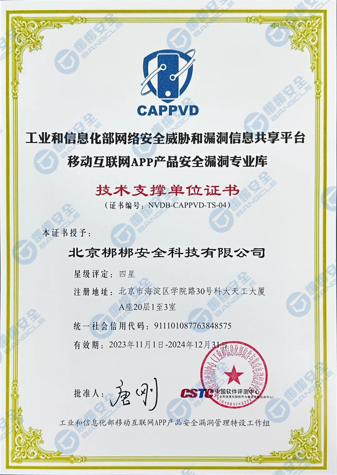 梆梆安全作为CAPPVD漏洞库全国唯三、移动应用安全领域唯一四星级技术支撑单位(目前最高等级)