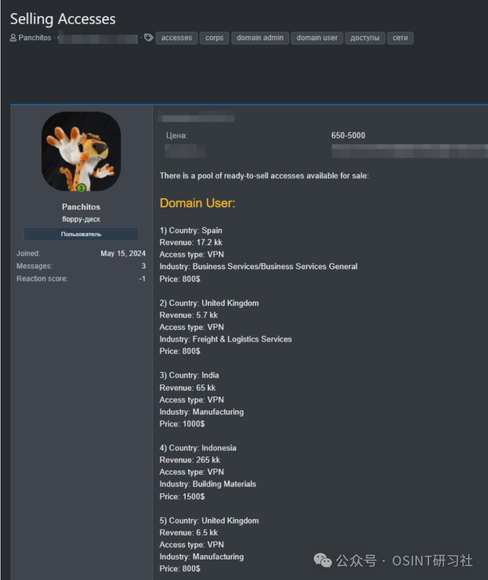 据称,黑客向多个国家和行业的多家公司提供未经授权的 VPN 和 SOCKS 访问权限。访问权范围从