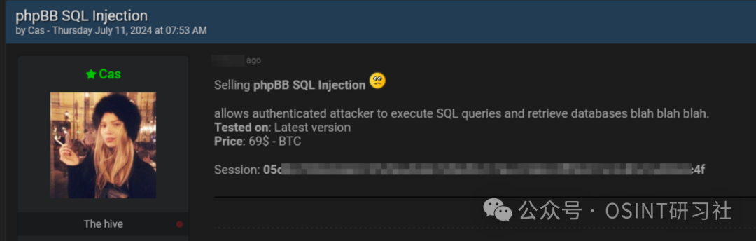 一名黑客宣布出售 phpBB(一种流行的开源论坛软件)的 SQL 注入漏洞。据该威胁者称,此漏洞允许经过身份验证的攻击者执行 SQL 查询并检索数据库。