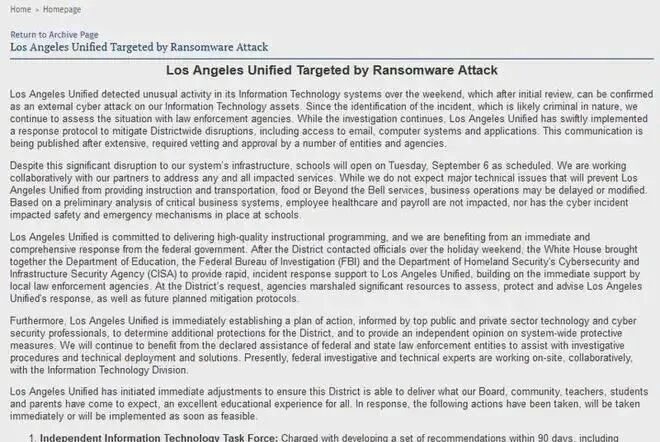 【安全圈】洛杉矶联合学区遭勒索软件攻击 多项服务出现中断