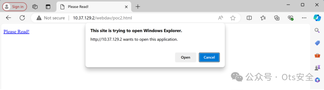 不幸的是,威胁者发现 Windows 并不总是能处理或正确应用 Web 标记来处理通过 WebDAV 提供的文件。从历史上看,Windows 将 WebDAV 共享视为更类似于 SMB 共享,而不是 HTTP Web 服务器。这可能非常危险。