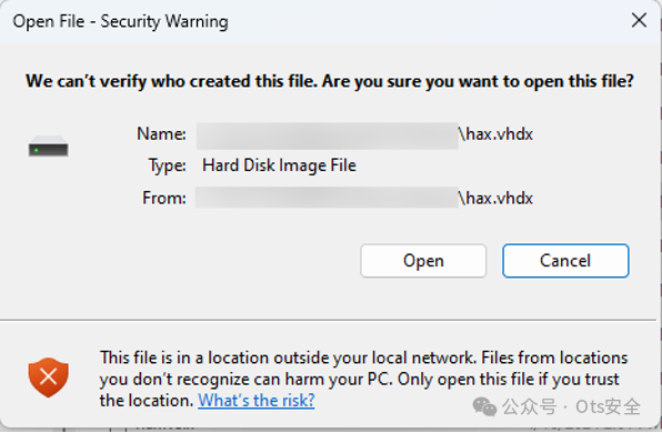 图 5 – 由于存在 Mark-of-the-Web 而显示的安全提示