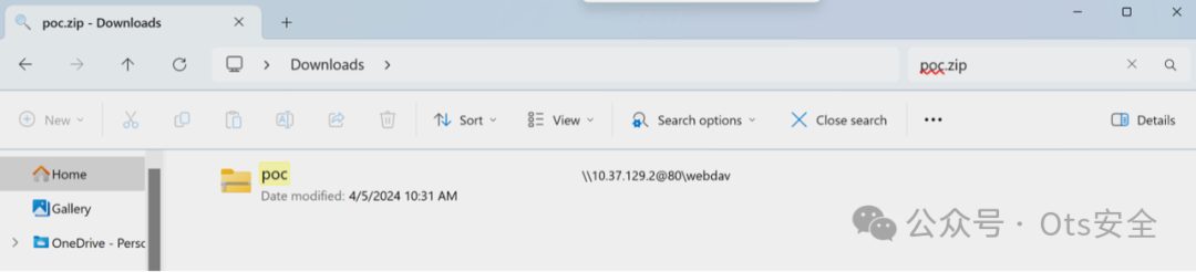 图 3 – Windows 资源管理器窗口仅显示 poc.lnk.zip