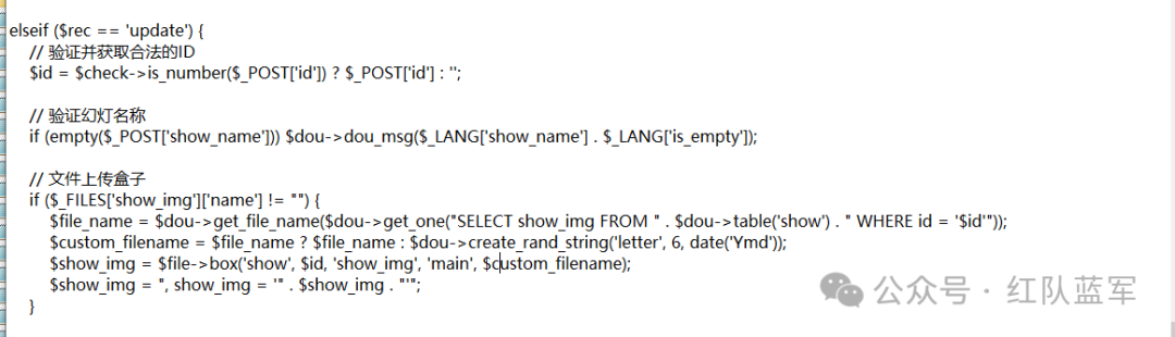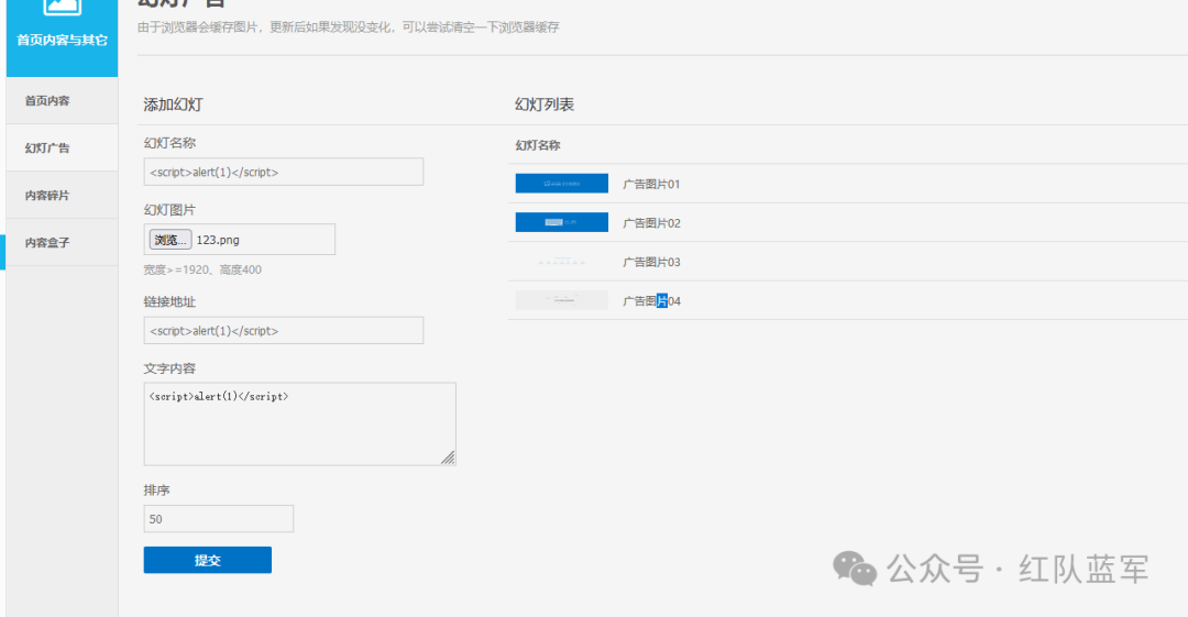 使用Token验证,验证成功,将上传的信息 show_name 、show_link 、show_img、show_text写入数据库中,这里没有二次校验,上传的名称,使用insert注入,没有成功。他这里直接将语句插入到数据库中。