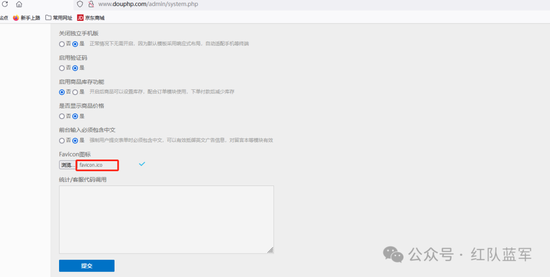 介绍:DouPHP 1.7_Release_20220822版本中存在一个远程代码执行(RCE)漏洞。拥有管理员权限的攻击者可以通过该漏洞在服务器上执行任意命令。漏洞通过上传恶意ico文件、修改文件扩展名来执行PHP代码