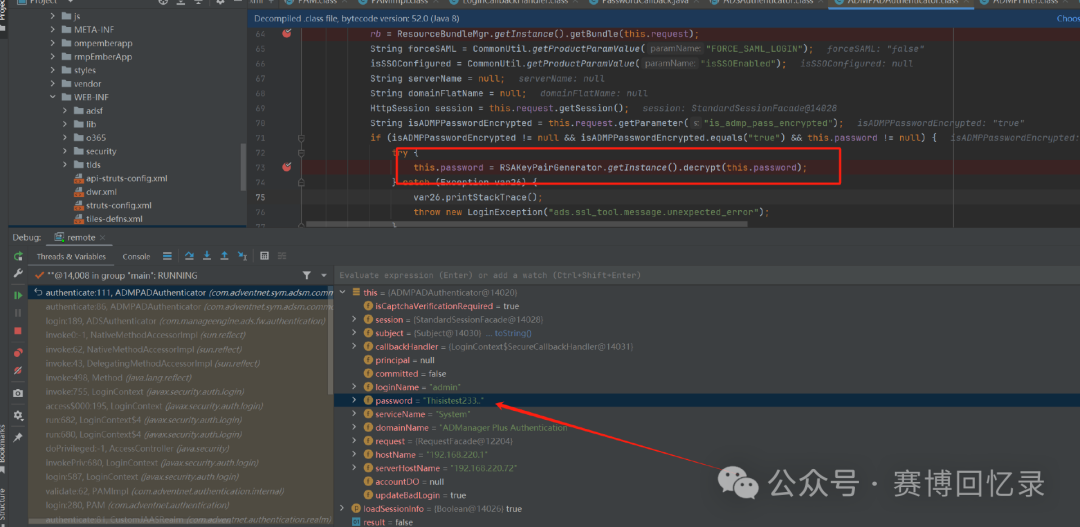 也就是 com.adventnet.authentication.realm.CustomJAASRealm#authenticate方法