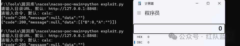 print(Fore.RED + f"\n[+] {target} 存在Nacos_Rce漏洞,执行命令:{command}" + Fore.RESET)
