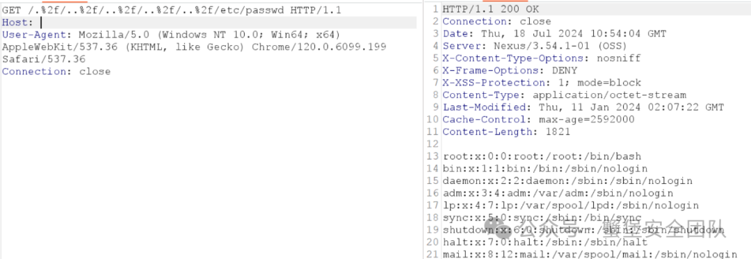 Sonatype Nexus Repository 3(Sonatype Nexus 3)是一个由Sonatype开发的仓库管理工具,用于管理和托管各种软件构件(如Maven构件、Docker镜像等)。它提供了一种集中化的方式来存储、管理和分发软件构件,以帮助团队协作和构建自动化。Sonatype Nexus Repository 3 存在路径遍历漏洞(CVE-2024-4956),未经身份认证的远程攻击者通过构造特殊的请求可以下载读取远程目标系统上的任意文件,对机密性造成很高的影响。